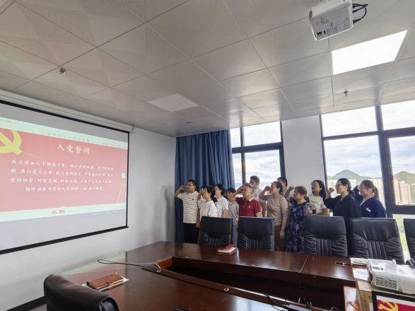 最后,支部书记为第三季度过政治生日的党员颁发贺卡,并带领全体党员重温入党誓词。