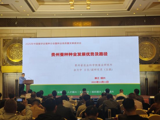 11月10—13日,我所科技人员余文中、何静、韩陈敏参加在浙江省绍兴市举办的中国蚕学会蚕种分会2025年学术研讨暨蚕种业高质量发展座谈会。副研究员余文中在会上作“贵州蚕种种业发展优势及路径”学术研讨报告。