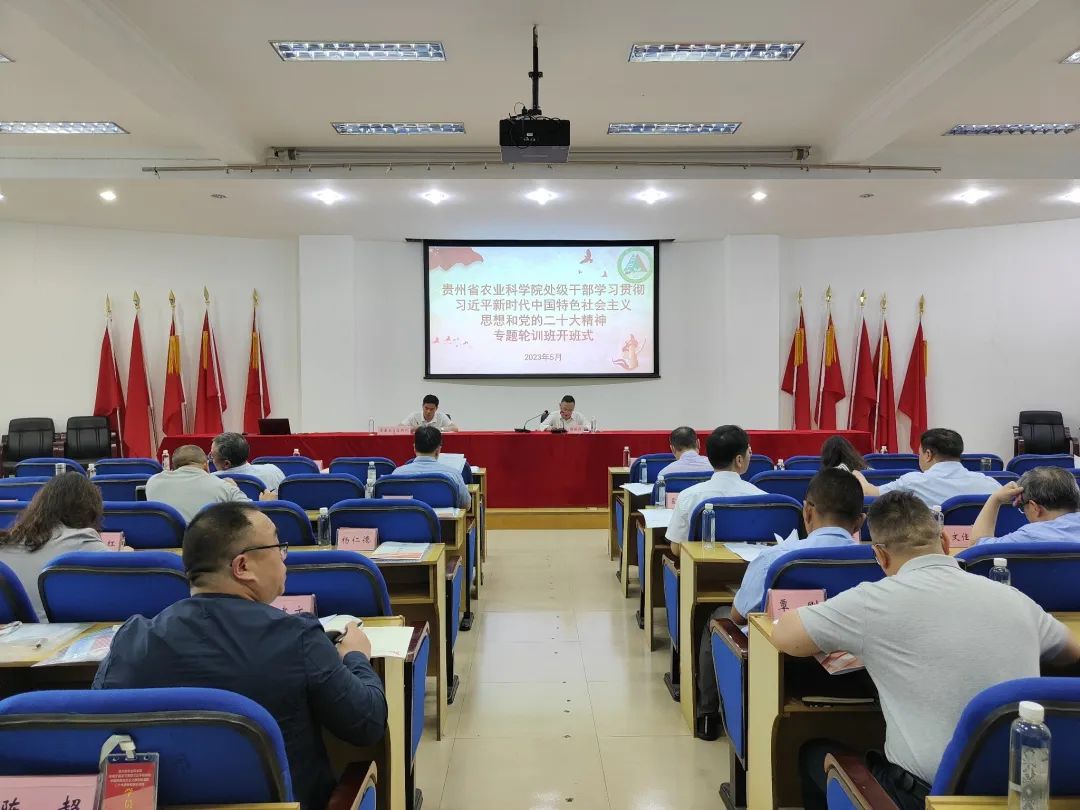 周维佳强调,学习贯彻习近平新时代中国特色社会主义思想和党的二十大精神是当前和今后一个时期的重大政治任务,举办本次专题培训班既是落实上级相关工作要求,也是我院推进农业科研工作高质量发展的现实需求,全体学员要以求真务实的精神参加学习培训,把自己摆进去、把自己工作职责、工作任务摆进去,力争学有所获、能力提升。周维佳要求,一要保证全身心投入学习。扎扎实实、真真正正学理论、强根基、筑牢信念,认认真真给自己充充电、补补脑;二要坚持做好学用结合。注重思考服务和推进高质量发展的各项工作中面临的新形势和新问题,把所学的知识运用到岗位的实际工作中去,真正做到学有所用、用所有成;三要加强轮训组织和服务保障。统筹好专题辅导和实地教学各环节安排,有序开展好专题培训工作;四要自觉严格遵守纪律。严格遵守中央八项规定及其实施细则精神和省委有关规定,认真开展学习,以端正的态度、饱满的精神状态和严谨的自觉来确保取得良好的学习效果。开班式后,省委政策研究室副主任肖章杰以《牢牢把握党的二十大精神-奋力谱写多彩贵州现代化建设新篇章》为题,给大家带来第一课。据悉,为使本次轮训工作取得扎实成效,院党委在课程设计、师资选配、形式内容上都做了精心的安排部署。本次轮训班计划从5月29日开始至6月9日结束,共2期,每期5天,将通过“专题辅导报告(党课)+专家讲授+案例教学+警示教育+学习研讨+自主学习”相结合的形式开展,做到全院处级领导干部培训全覆盖,推动全院学习贯彻习近平新时代中国特色社会主义思想和党的二十大精神入脑入心、走深走实、见行见效。