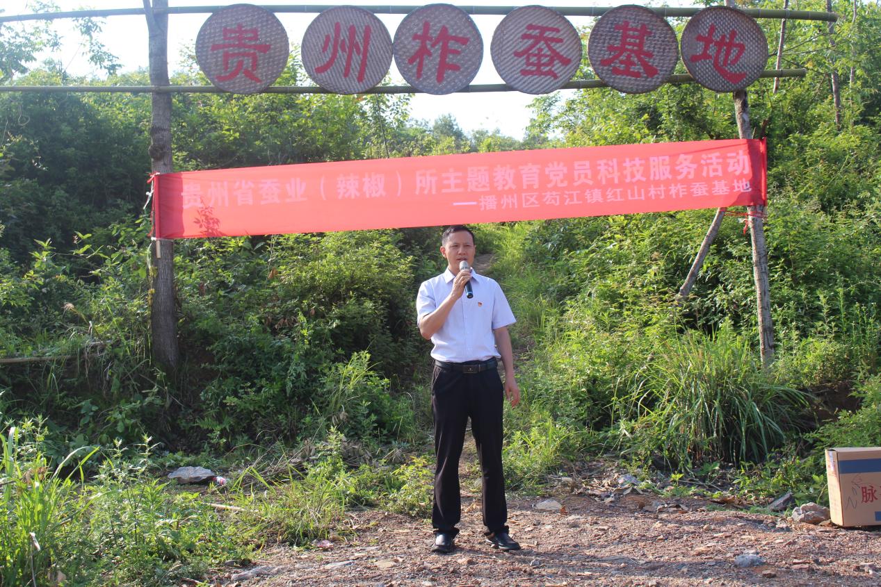 活动开始前,王小波结合主题教育介绍了本次活动的目的、意义,贵州柞蚕产业发展的历史、现状、存在的问题以及科技服务取得的效果等。何成禄从苟江镇的发展条件、资源禀赋、柞蚕放养基础等方面作了详细介绍。