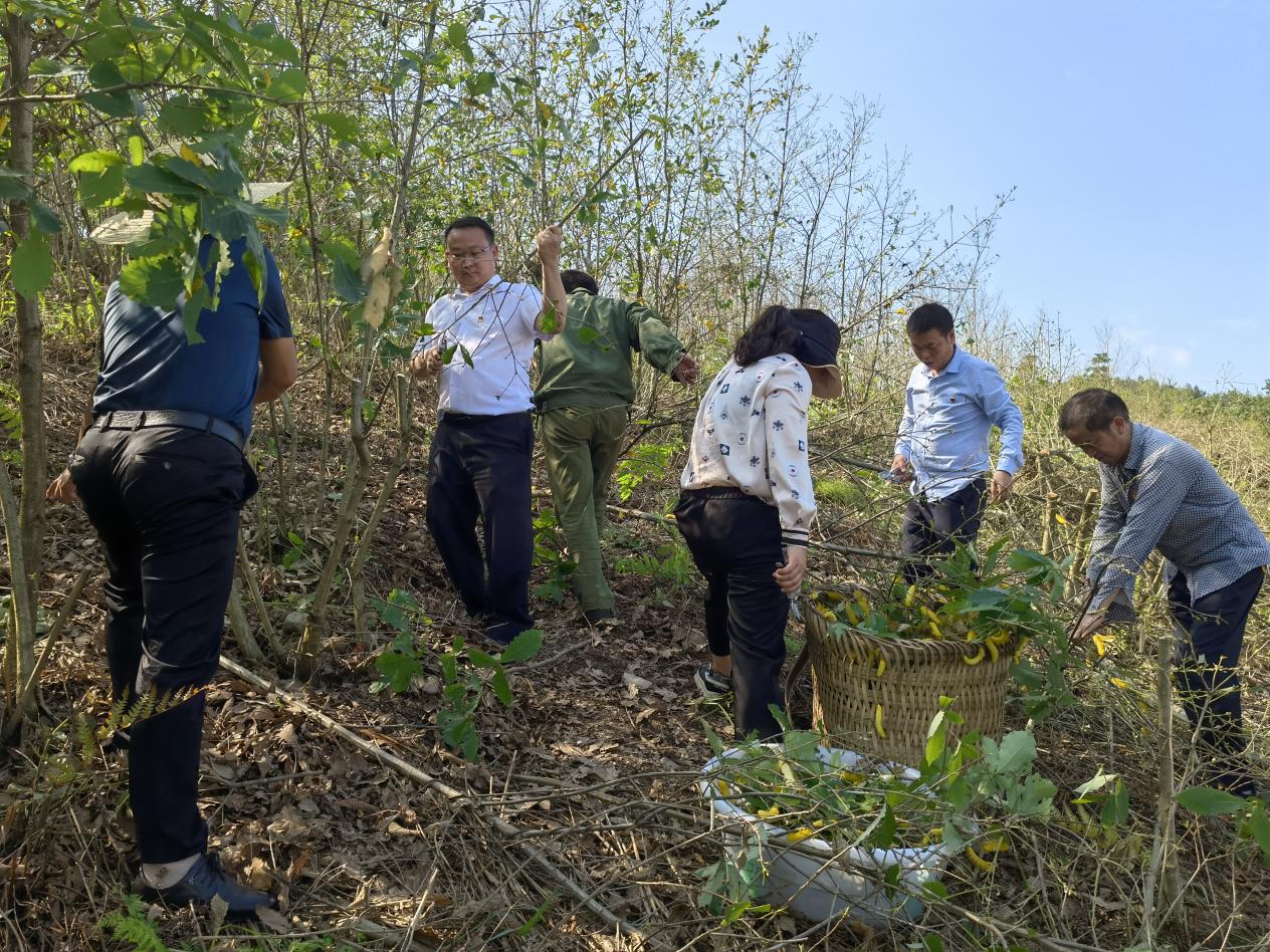 5月27日,正值柞蚕放养大忙季节,播州区苟江镇红山村的柞蚕宝宝已进入大蚕期,经过五十天的蜕变与生长,将结茧化蛹。为切实解决蚕农春蚕生产中遇到的困难,确保放养获得丰收,省农科院蚕业所党委将主题教育与科研创新、服务产业紧密结合起来,充分发挥基层党组织战斗堡垒作用和党员干部先锋模范作用,联合播州区苟江镇红山村党总支组成党员服务团走进柞蚕放养基地,“以学促干”开展主题教育“科技助力产业发展”实践活动。蚕业所党委书记王小波、所长罗朝斌、副所长邢丹,苟江镇党委书记何成禄、副镇长周方正及红山村党员干部共30余人参加。