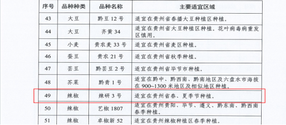 近日,贵州省农业农村厅正式推介发布2026年农业主导品种和主推技术,共遴选出60个农业主导品种、66项农业主推技术。我所选育的辣椒品种“辣研3号”、家蚕品种“贵蚕4号”以及研发的“辣椒机械播种育苗技术”成功入选,成为全省农业科技成果转化、农业高质量发展的重要组成部分,也是我所服务贵州现代山地特色高效农业发展在农业育种与技术研发领域取得的重要成果。