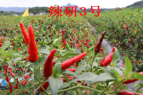 辣研3号【GPD 辣椒(2022)520644】:干鲜兼用型三系朝天椒品种。中熟,全生育期116天。株高64厘米,株幅63厘米,株型开展。果实锥形,果长7.58厘米,果横径1.95厘米,果肉厚度0.13厘米,单果重7.09克。老熟果鲜红色,果面光亮,硬度好。辣椒素含量0.14%,抗CMV、TMV、炭疽病、疫病,中抗倒伏,抗旱性强,中抗渍。平均亩产鲜红椒1500kg,适宜在贵州省春、夏季节种植。